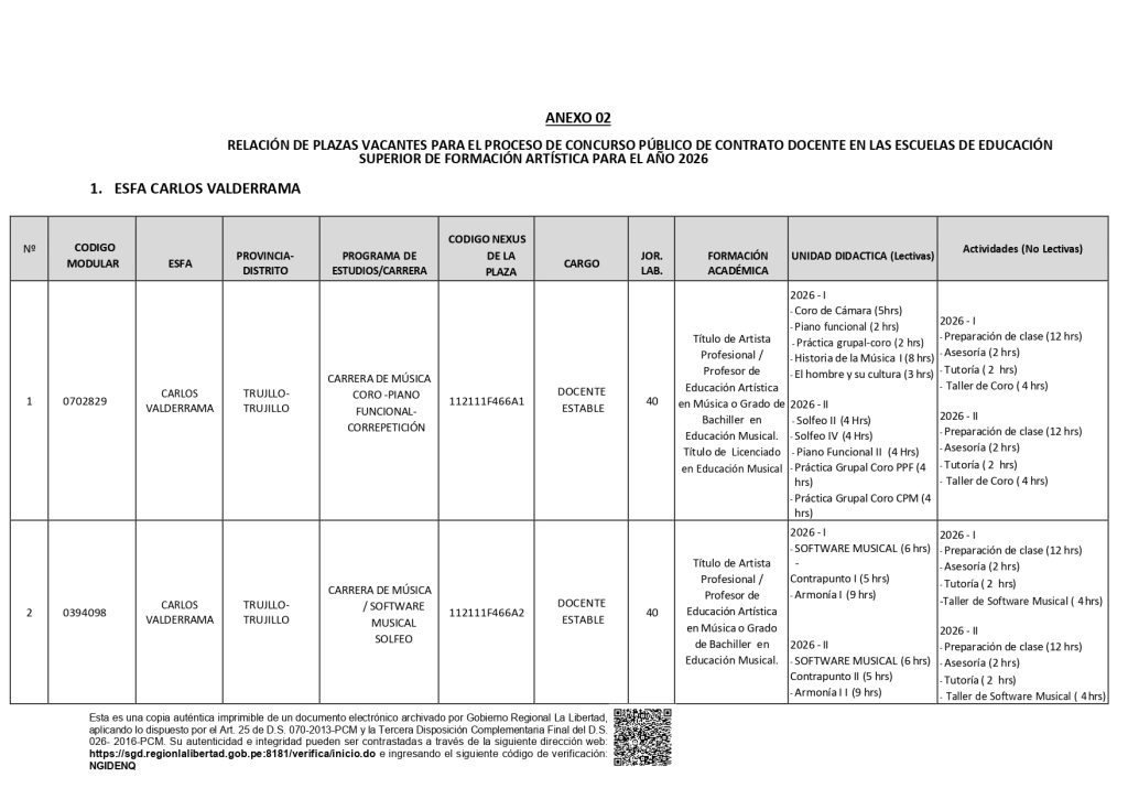 Concurso para cubrir Plaza de CANTO por encargatura de Plaza de Jefe de Taller