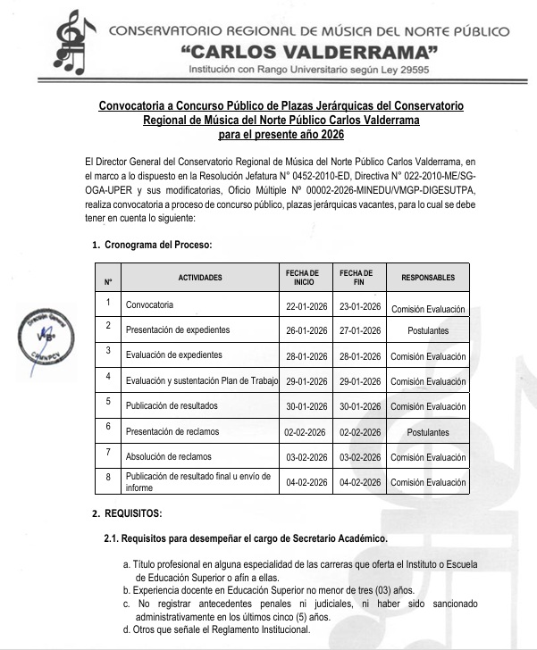 Convocatoria a Concurso para cubrir Plazas Jerárquicas 2026