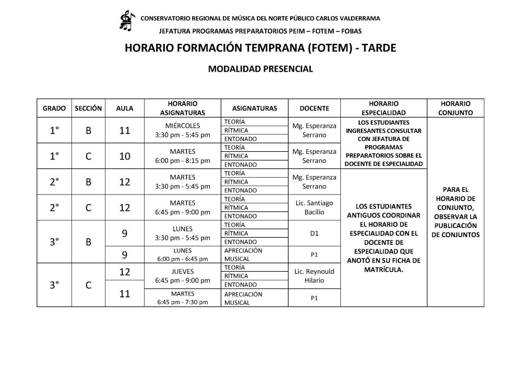 HORARIOS PROGRAMA PREPARATORIO DE FORMACIÓN TEMPRANA AÑO 2026